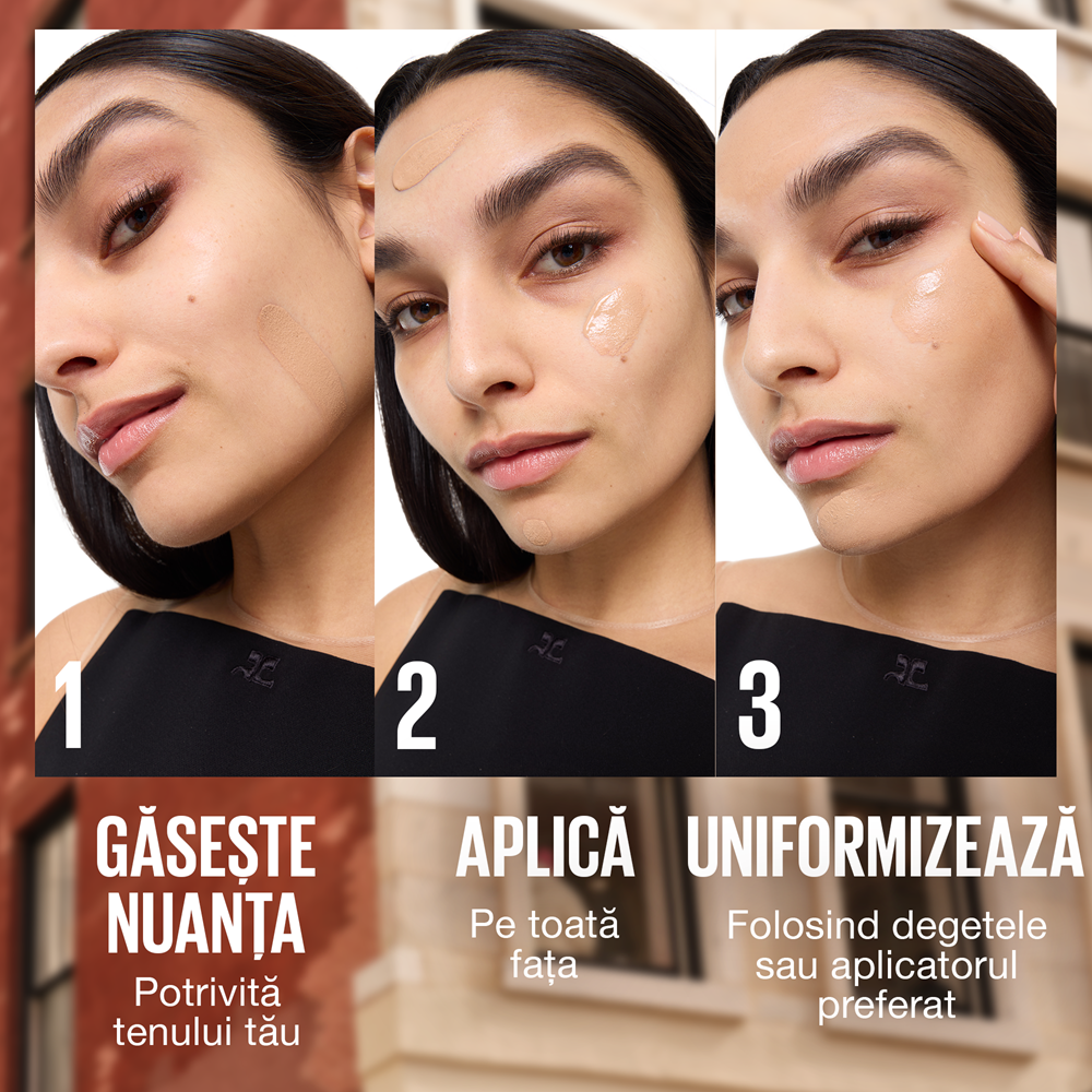 - textura fina si usoara, ce se intinde uniform si se adapteaza natural la tonul pielii;