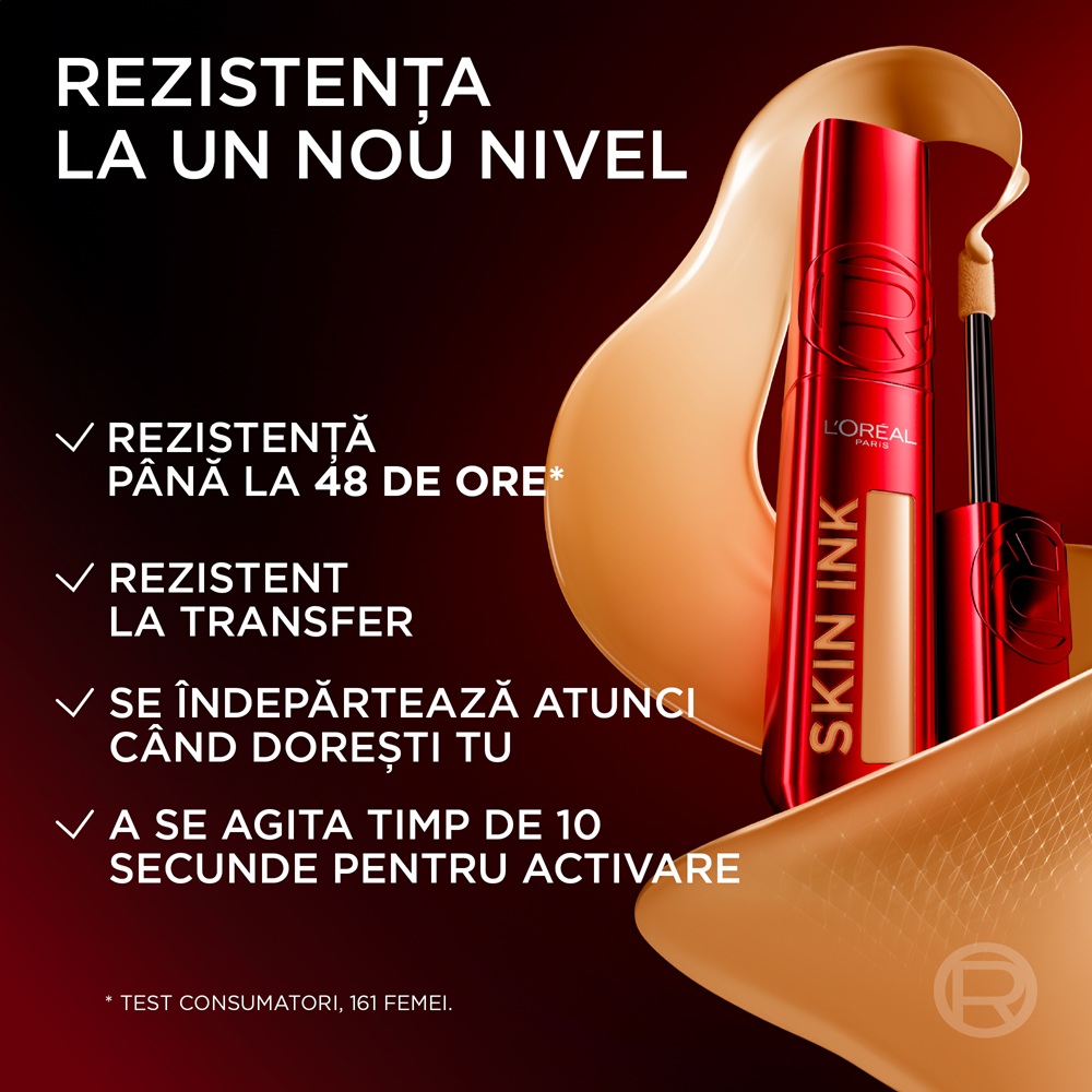 - rezista pana la 48 de ore prin formula duala fond de ten + corector;