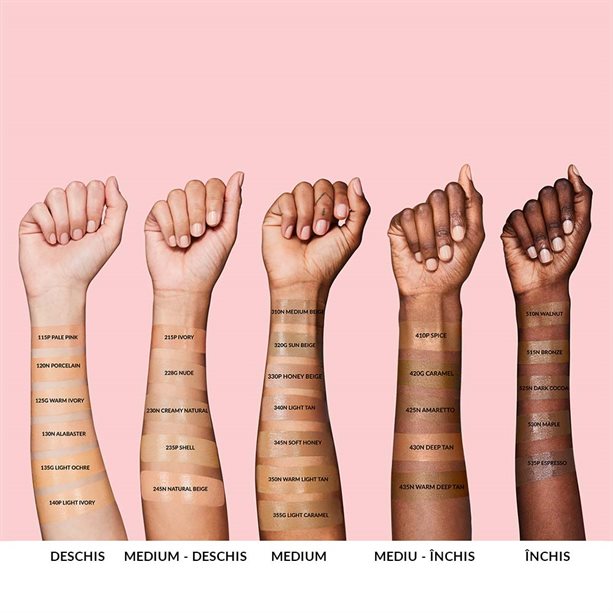 Aplica fondul de ten cu o pensula, un burete sau cu degetele. Intinde fondul de ten bine pe intreaga zona a fetei, linia maxilarului si a parului, inclusiv pe gat si pe decolteu pentru un look natural.
