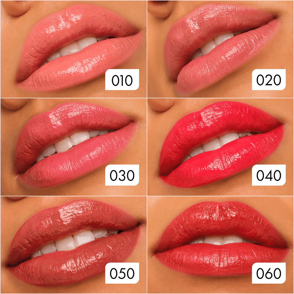 - combină aspectul unui gloss cu confortul unui balsam de buze, oferind un finisaj luminos și uniform;
