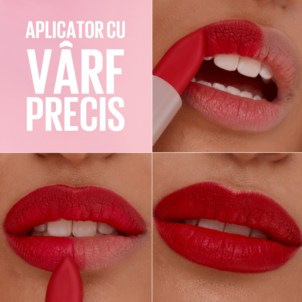 - ruj cu aspect mat intr-o culoare intensa, care nu usuca buzele;