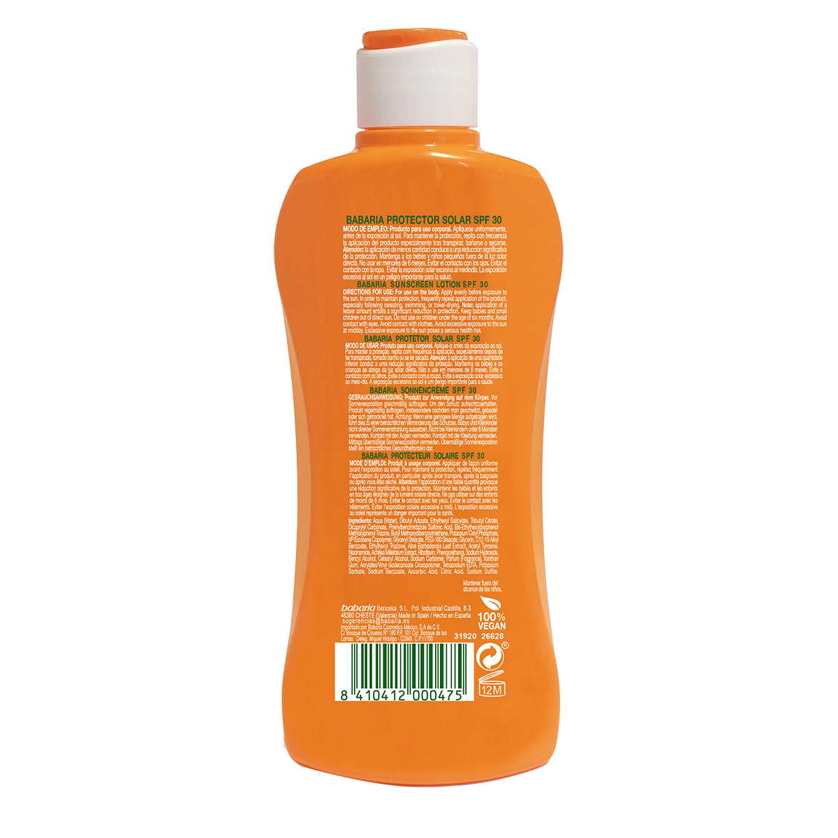 Precautii:Nu expuneti bebelusii si copiii feriti de soarele direct. A nu se utiliza la copiii sub varsta de sase luni. Evitati contactul cu ochii. Evitati contactul cu hainele. Evitati expunerea excesiva la soare la amiaza. Expunerea excesiva la soare prezinta un risc grav pentru sanatate.