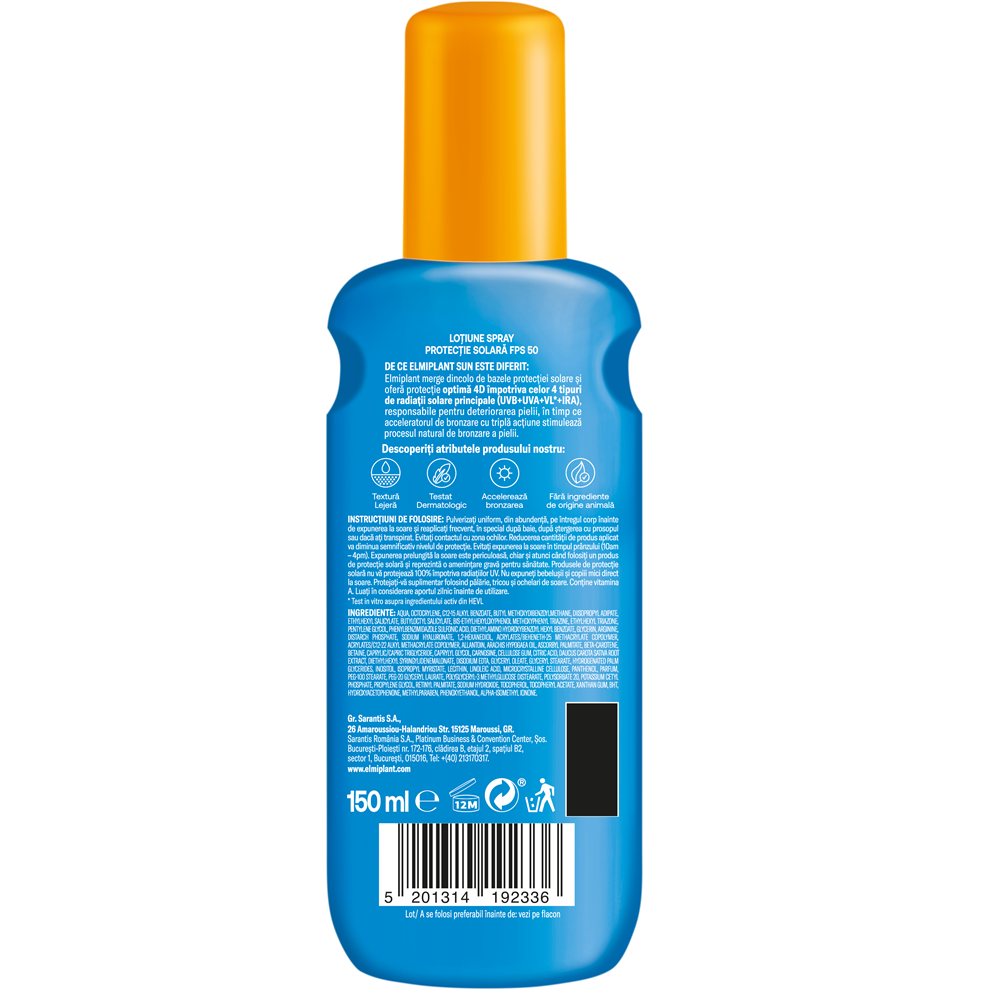 Pulverizati uniform si din abundenta pe intregul corp inainte de expunerea la soare.