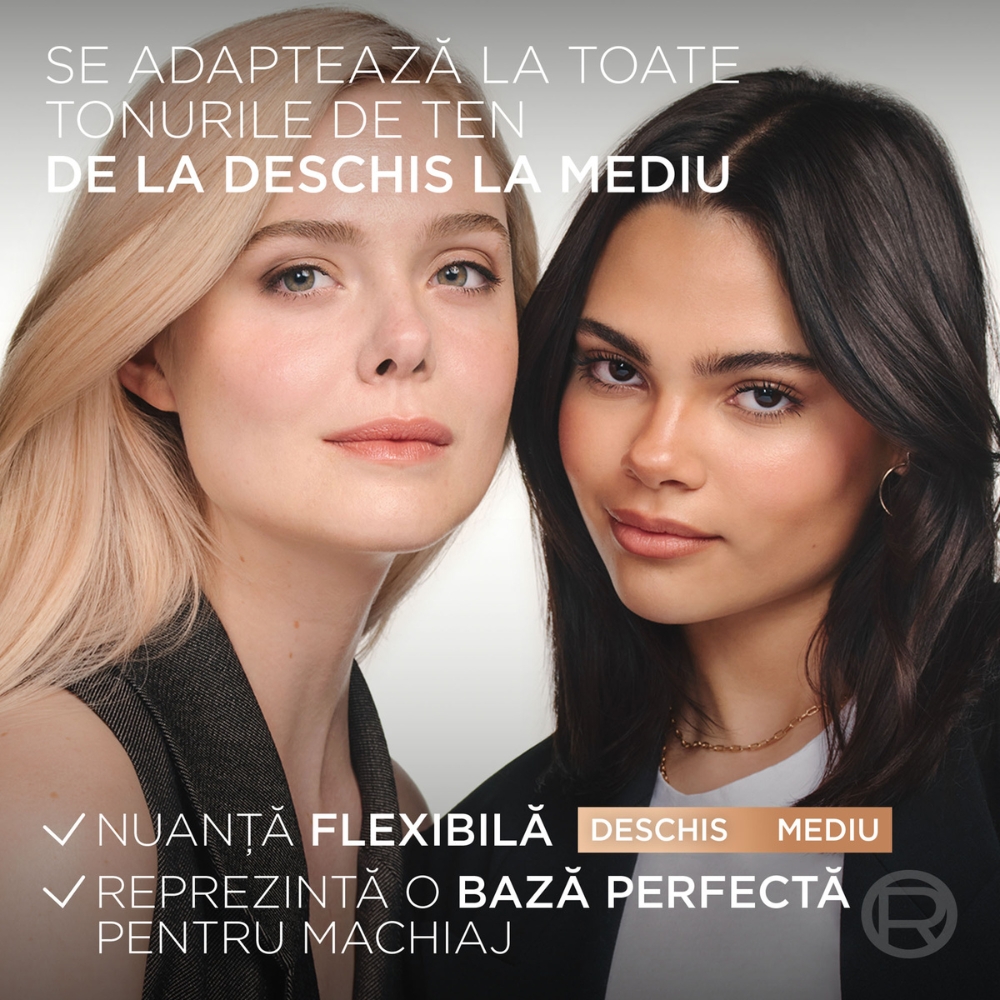 Mod de utilizare:Aplicati uniform in fiecare dimineata dupa rutina de ingrijire a pielii si inainte de machiaj. Poate fi folosit singur ca o crema hidratanta usoara zilnica sau pentru retusuri in timpul zilei. Agitati bine inainte de utilizare.