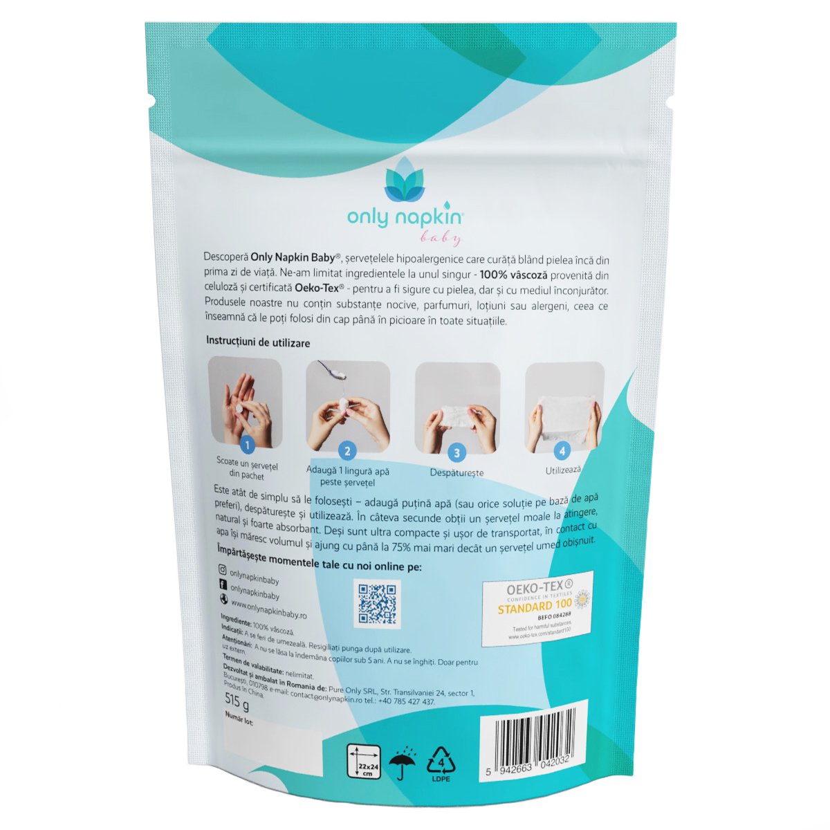 - șervețelele Only Napkin Baby® sunt 100% biodegradabile și nu conțin plastic;