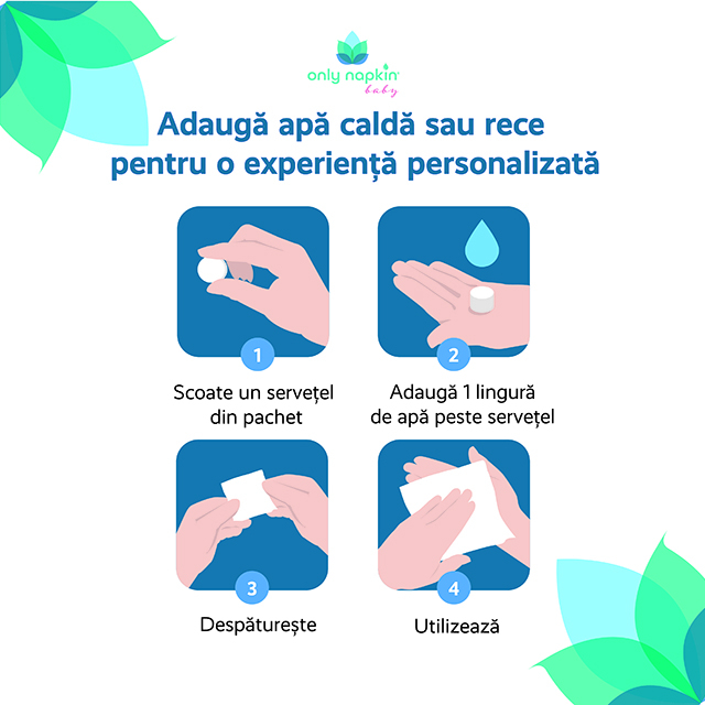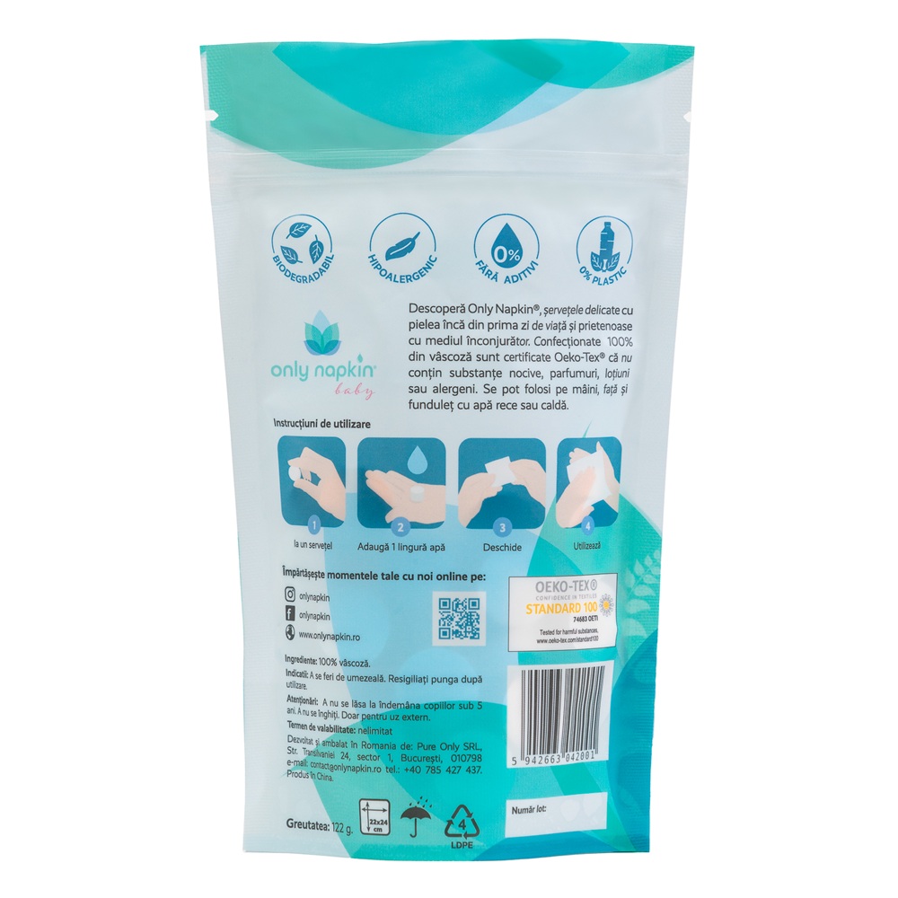 - șervețelele Only Napkin Baby® sunt 100% biodegradabile și nu conțin plastic;