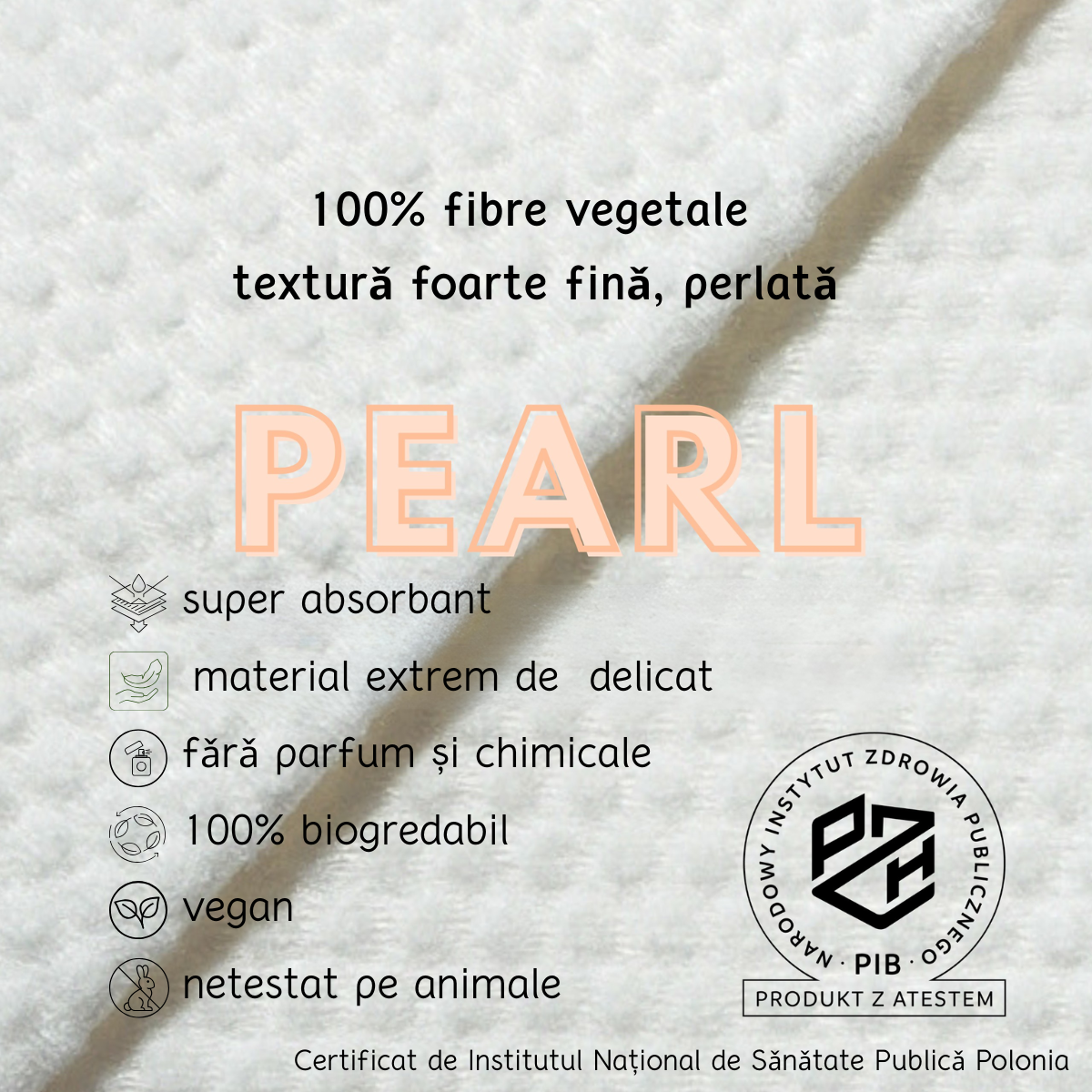 - prosoape faciale biodegradabile de unică folosință Pearl (celuloză vegetală);