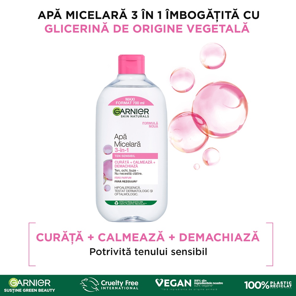 - tehnologia micelara capteaza impuritatile ca un magnet, lasand pielea curata.