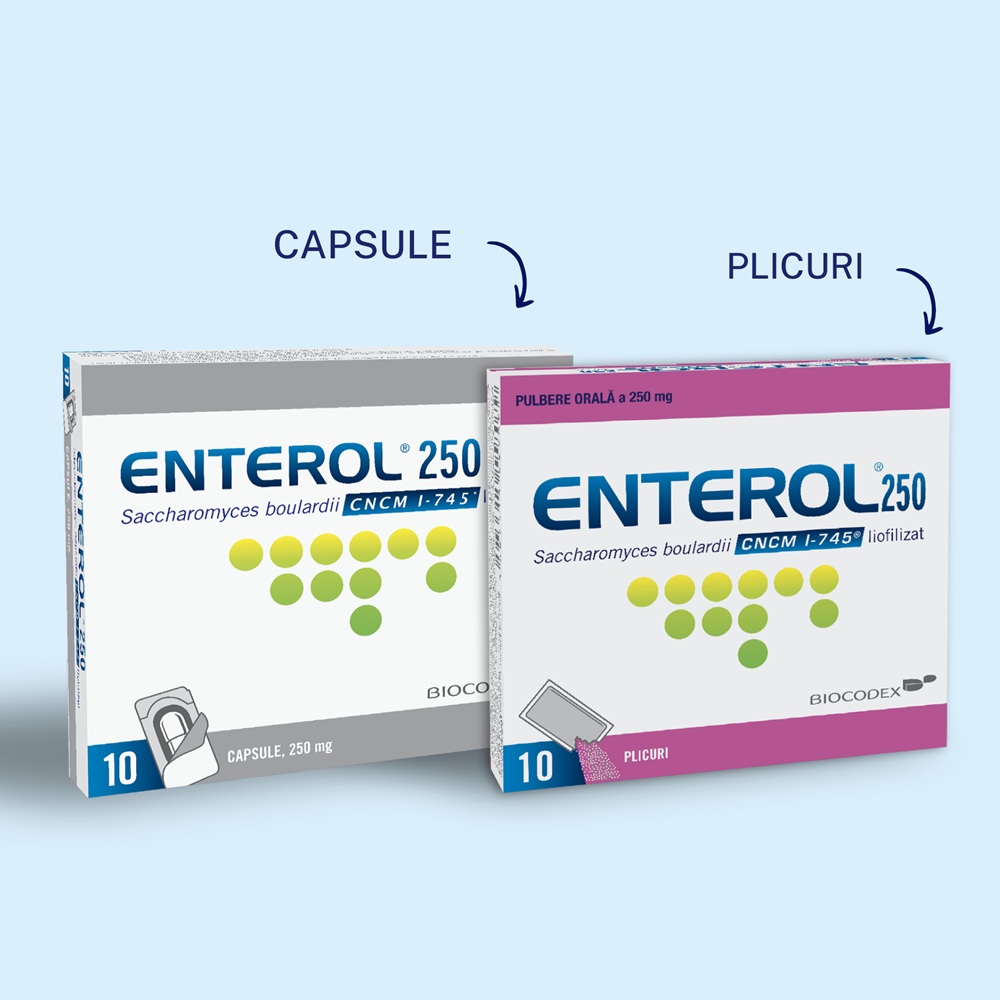 Doza recomandată este de 1-2 plicuri Enterol 250 mg, de 1-2 ori pe zi.