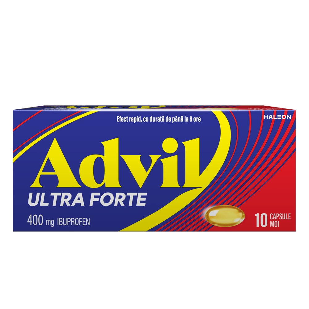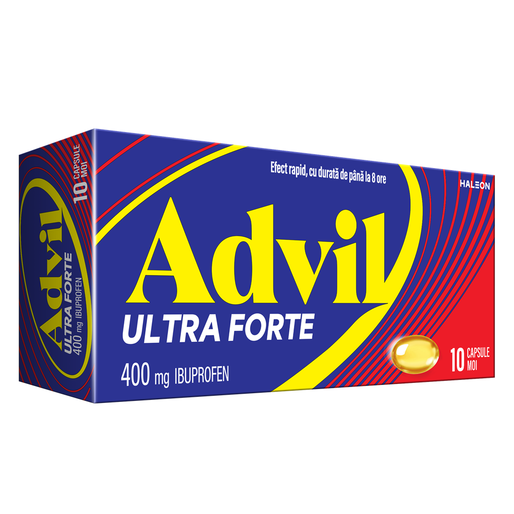 Advil Ultra Forte 400 mg conţine ibuprofen sub formă lichidă, în acest fel absorbţia fiind de cel puţin două ori mai rapidă decât în cazul comprimatelor. Acest fapt conduce la un debut rapid al procesului de calmare a durerii, efectul fiind îndelungat, de până la 8 ore.