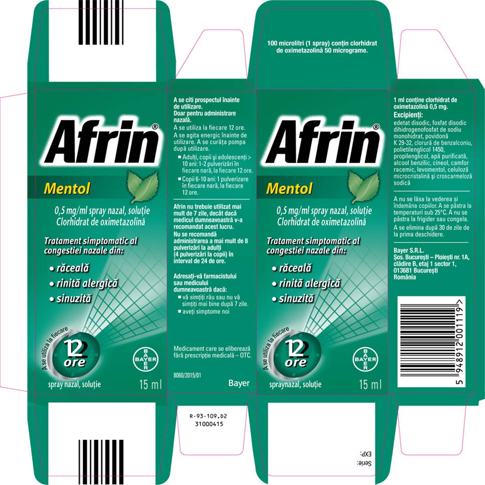 Afrin spray nazal, soluție conține substanța activă clorhidrat de oximetazolină.