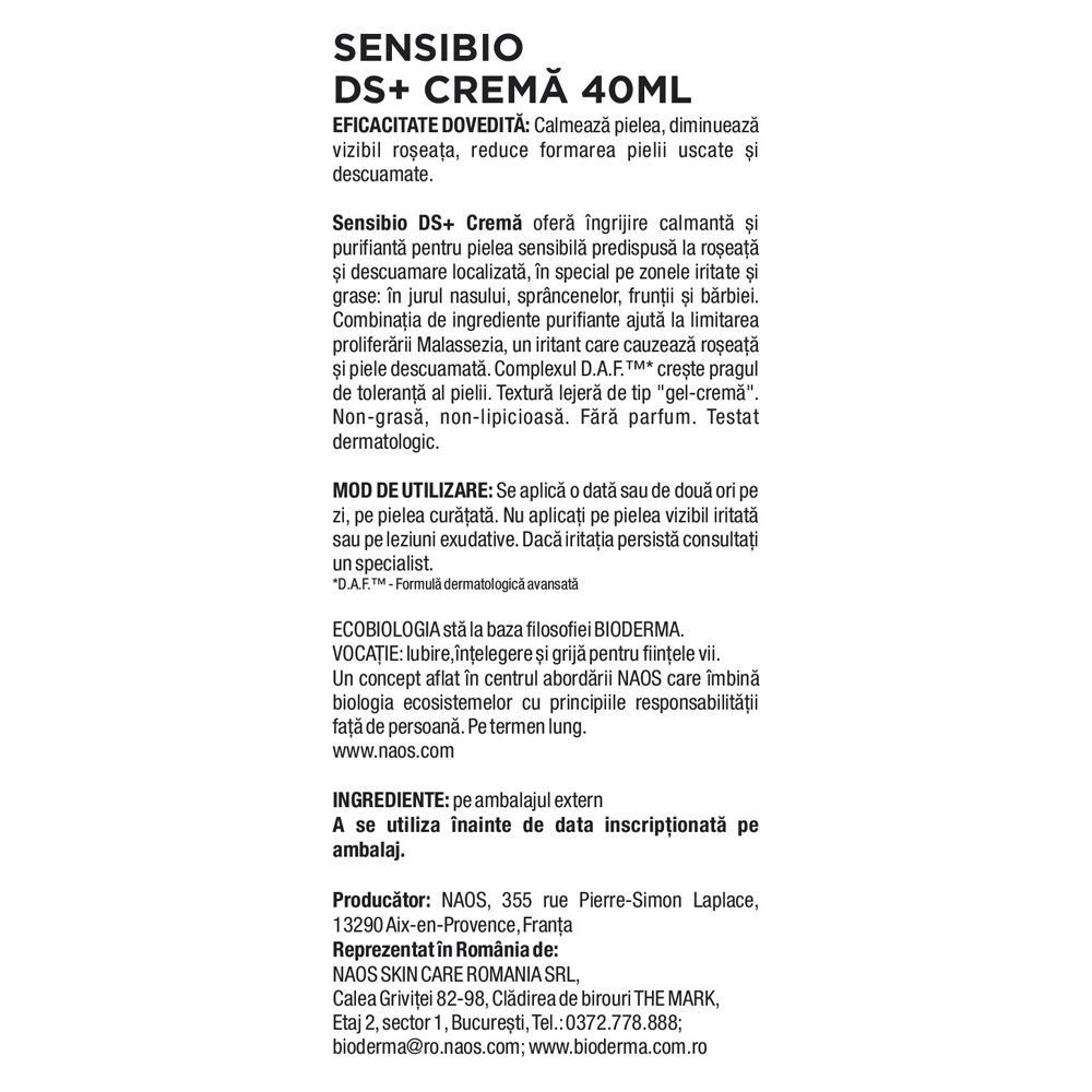 - ofera ingrijire calmanta si purifianta pentru pielea sensibila predispusa la roseata si descuamare localizata, in special pe zonele iritate si grase: in jurul nasului, sprancenelor, fruntii si barbierii;