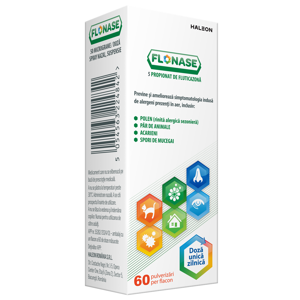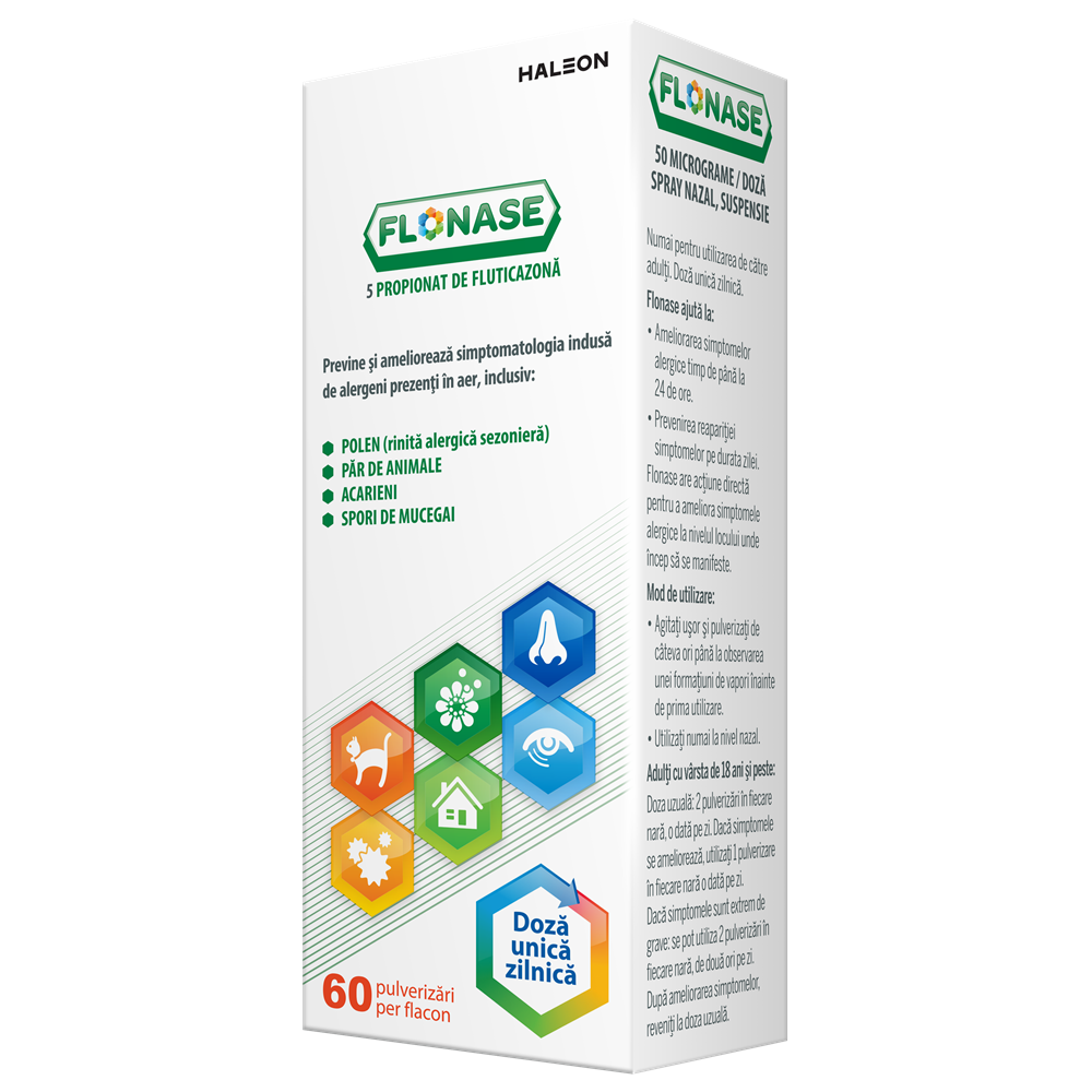 Flonase se utilizează la adulţi cu vârsta de 18 ani şi peste, pentru tratamentul simptomelor alergice ale febrei fânului şi ale altor alergii provocate de factori alergeni prezenţi în aer cum ar fi alergiile la animale de casă, acarieni şi spori de mucegai. Acesta ameliorează simptome inclusiv strănut, mâncărimi la nivelul ochilor şi hiperlacrimaţie (ochi umezi) şi simptome precum secreţii nazale (nas care curge) şi mâncărimi ale nasului sau nas înfundat, timp de până la 24 de ore.