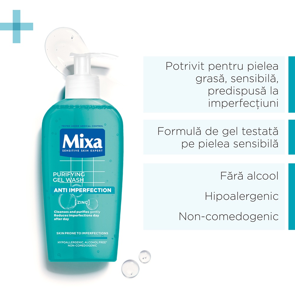 - gelul de curatare pentru ten sensibil purifiant elimina impuritatile si excesul de sebum;