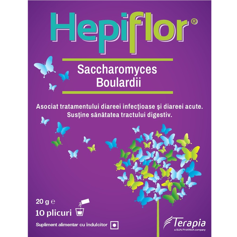 Hepiflor Saccharomyces Boulardii 10 plicuri Terapia(poate contribui la sustinerea sanatatii tractului digestiv) face parte din categoria supliment alimentar.