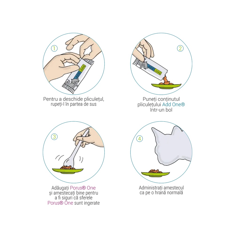1 plic de Add One amestecat cu medicatia pisicii.
