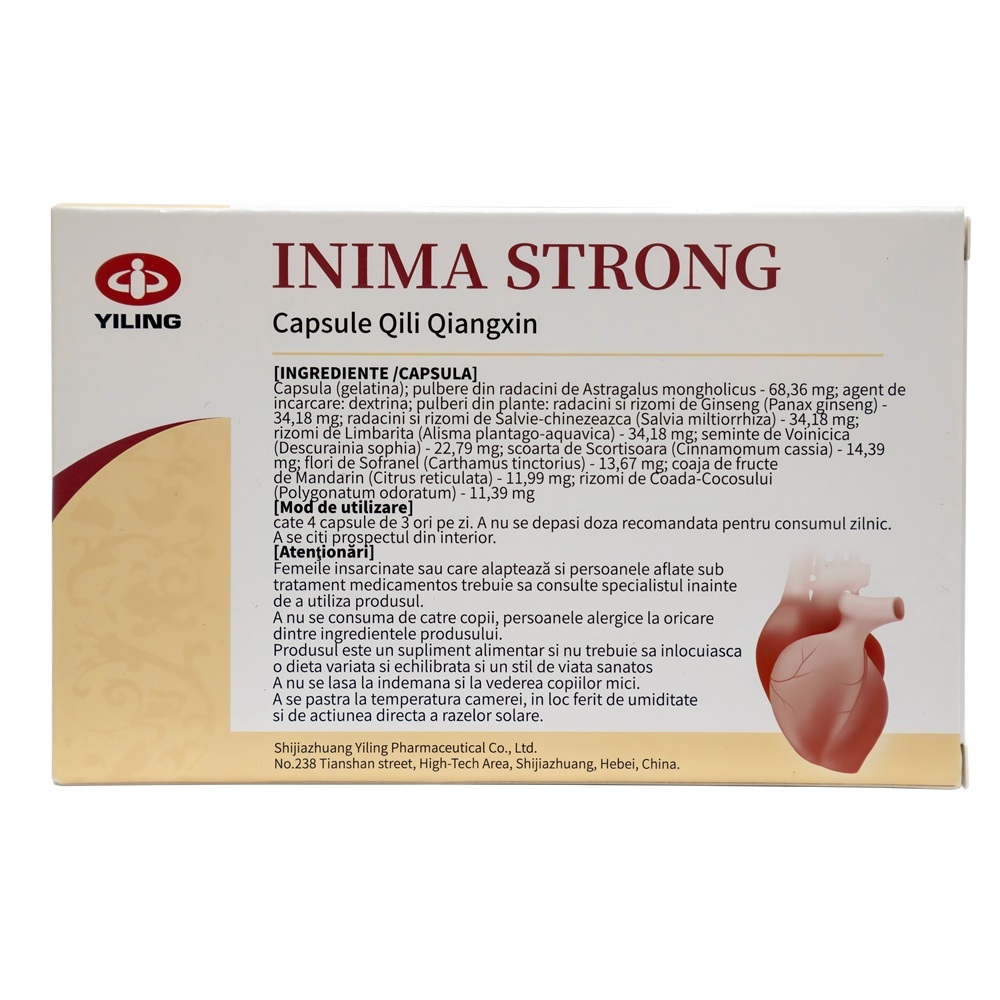 Capsula (gelatina); pulbere din radacini de Astragalus mongholicus - 68,36 mg; agent de incarcare: dextrina; pulberi din plante: radacini si rizomi de Ginseng (Panax ginseng) - 34,18 mg; radacini si rizomi de Salvie-chinezeasca (Salvia miltiorrhiza) - 34,18 mg; rizomi de Limbarita (Alisma plantago-aquavica) - 34,18 mg; seminte de Voinicica (Descurainia sophia) - 22,79 mg; scoarta de Scortisoara (Cinnamomum cassia) - 14,39 mg; flori de Sofranel (Carthamus tinctorius) - 13,67 mg; coaja de fructe de Mandarin (Citrus reticulata) - 11,99 mg; rizomi de Coada-Cocosului (Polygonatum odoratum) - 11,39 mg.
