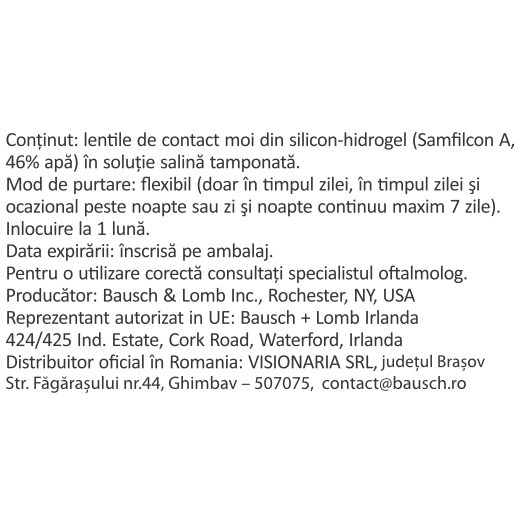 Lentile de contact moi din silicon-hidrogel (Samfilcon A, 46% apa) in solutie salina tamponata.