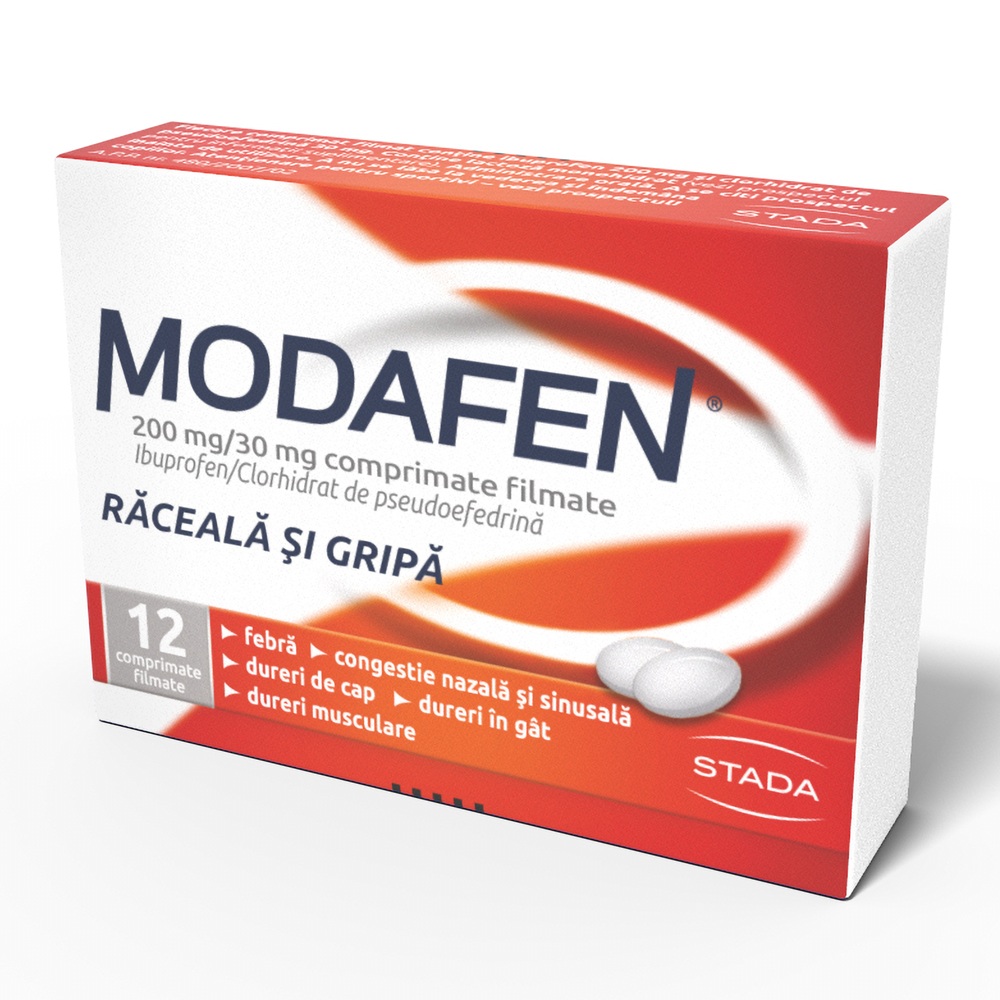 Modafen face parte din grupa medicamentelor decongestionante nazale de uz sistemic, simptomatice, combinaţii, utilizat în ameliorarea simptomelor neplăcute ale gripei şi răcelii, cum sunt congestia nazală şi sinusală, durerea de cap, febră, durere în gât, dureri musculare şi articulare.
