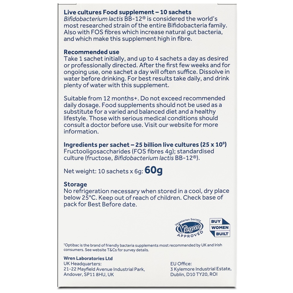 Probiotic cu Bifidobacterii si Fibre, 10 plicuri, OptiBac [5060086610369]