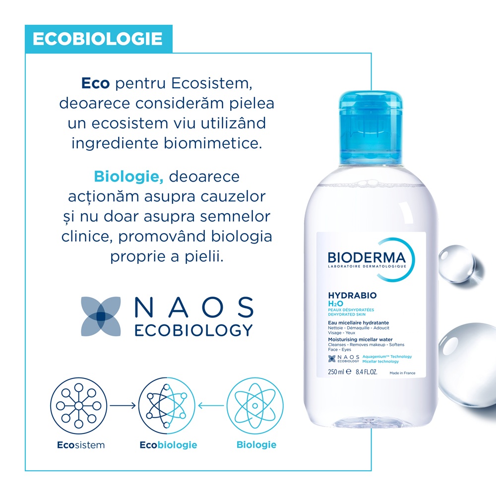 Informatii utile despre Solutie micelara hidratanta Hydrabio H2O, 250 ml, Bioderma gasiti in articolele: Remedii la domiciliu pentru pielea uscata, Rutina completa de ingrijire a tenului - dimineata, Rutina de ingrijire a tenului - seara, Rutina de ingrijire a tenului sensibil. Solutie micelara hidratanta Hydrabio H2O 250 ml Bioderma (curata si elimina machiajul, stimuleaza hidratarea si respecta fragilitatea pielii sensibile) contine activi cosmetici:apa micelara, si are indicații in:curatarea tenului, ingrijirea pielii uscate ( xeroza, xerodermie).