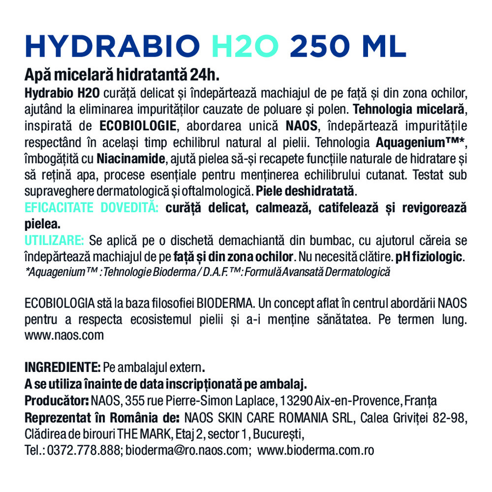 Solutie micelara hidratanta Hydrabio H2O, 250 ml, Bioderma