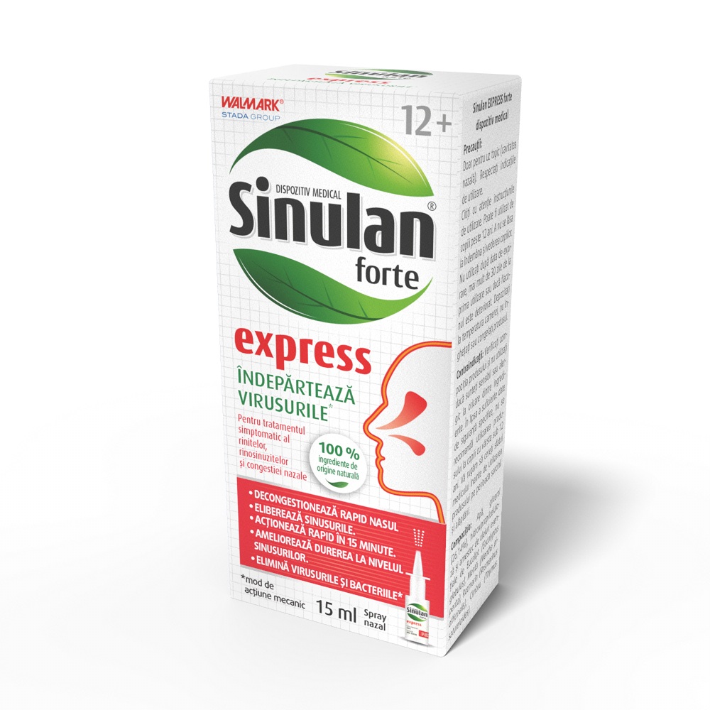 - cand este pulverizat pe mucoasa nazala, Sinulan Express Forte formeaza un film de protectie osmotic si rezistent pe suprafata mucoasei nazale;