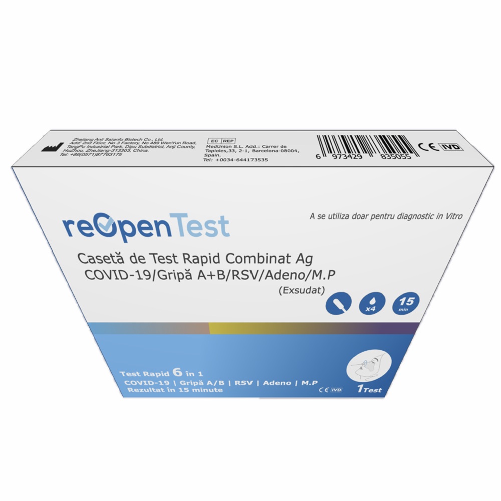 Test rapid pentru Sars-Cov 2 Ag si Influenza A&B/RSV/ADENO/MP 6 in 1 Combo Reopen, 1 bucata, Montana Med [6973429835055]