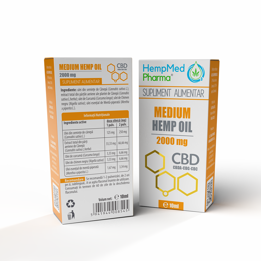 - este un supliment alimentar cu o formula bazata in principal pe ulei din seminte de canepa si extract din partile aeriene ale plantei de canepa;