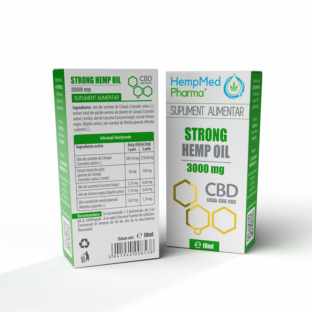 - este un supliment alimentar cu o formula bazata in principal pe ulei din seminte de canepa si extract din partile aeriene ale plantei de canepa;