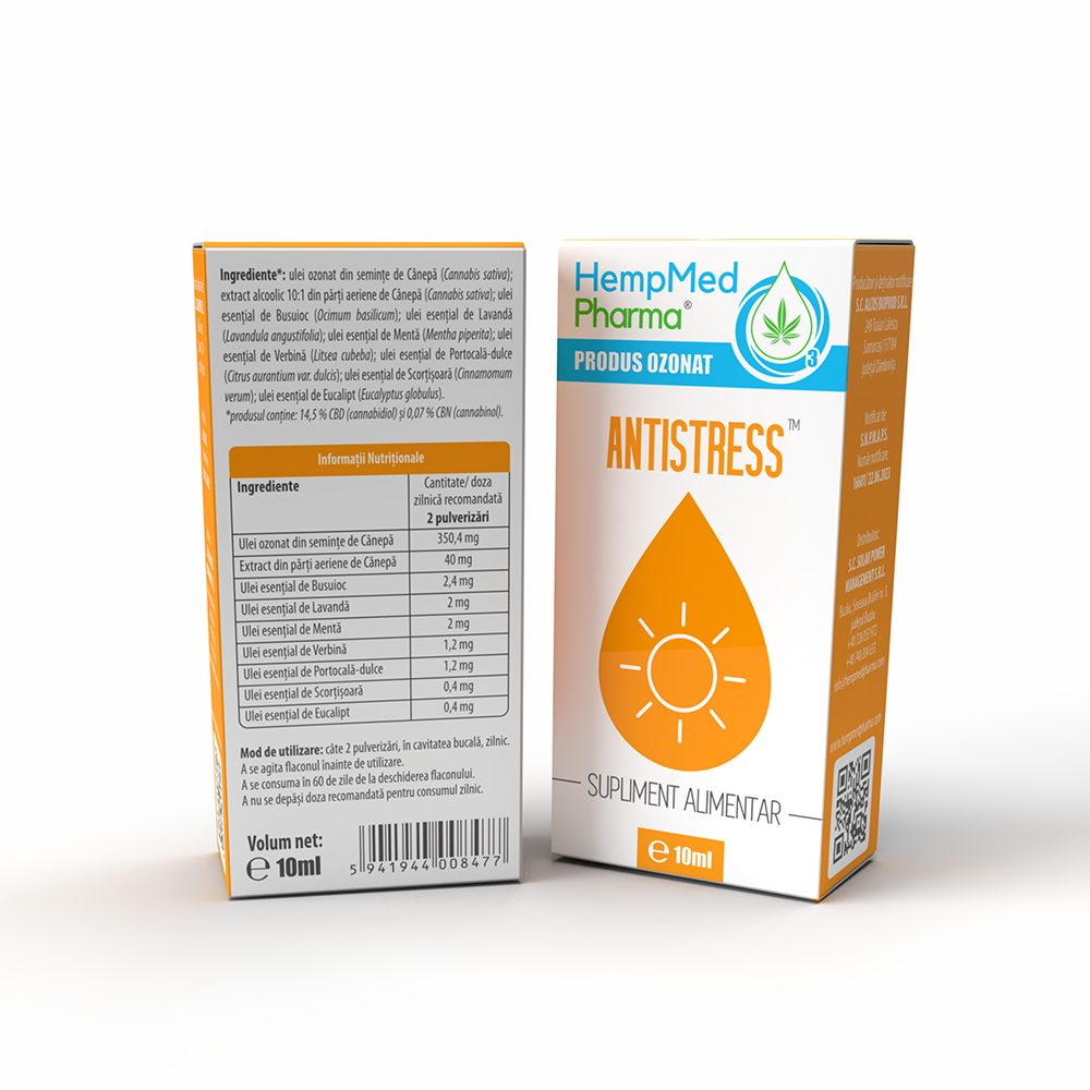 - contine ulei ozonat din seminte de canepa, un extract standardizat din parti aeriene de canepa si o combinatie sinergica de uleiuri esentiale;