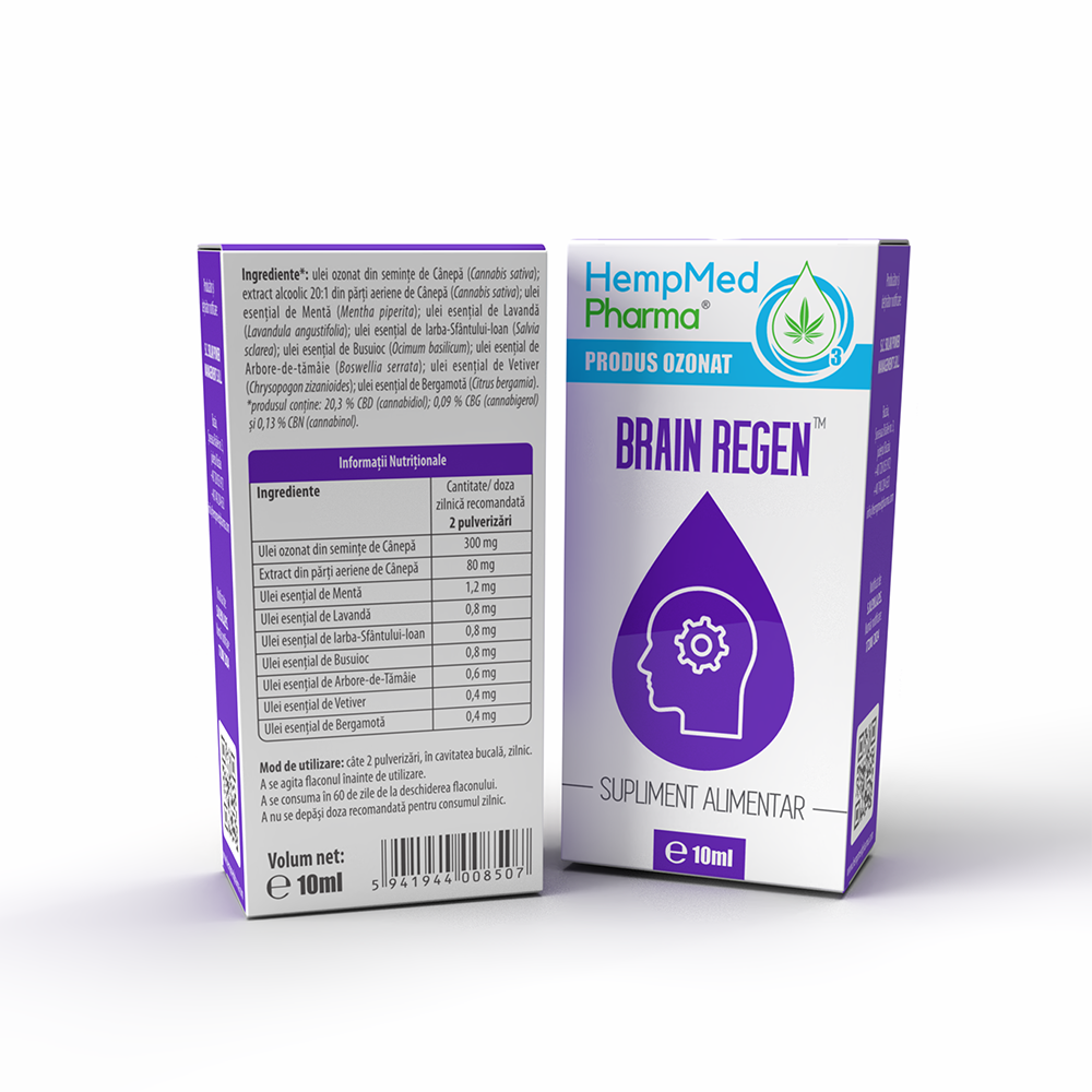 - contine ulei ozonat din seminte de canepa, un extract standardizat din parti aeriene de canepa si o combinatie sinergica de uleiuri esentiale;