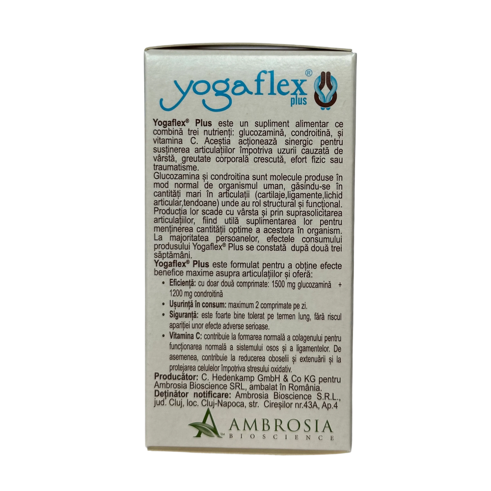 - Yogaflex Plus este un supliment alimentar ce combina trei nutrient: glucozamina, condroitina si vitamina C;