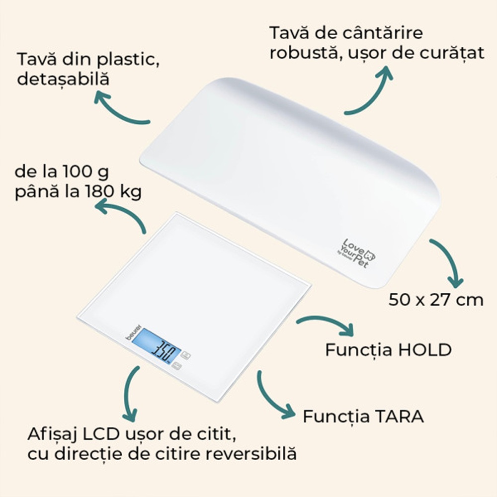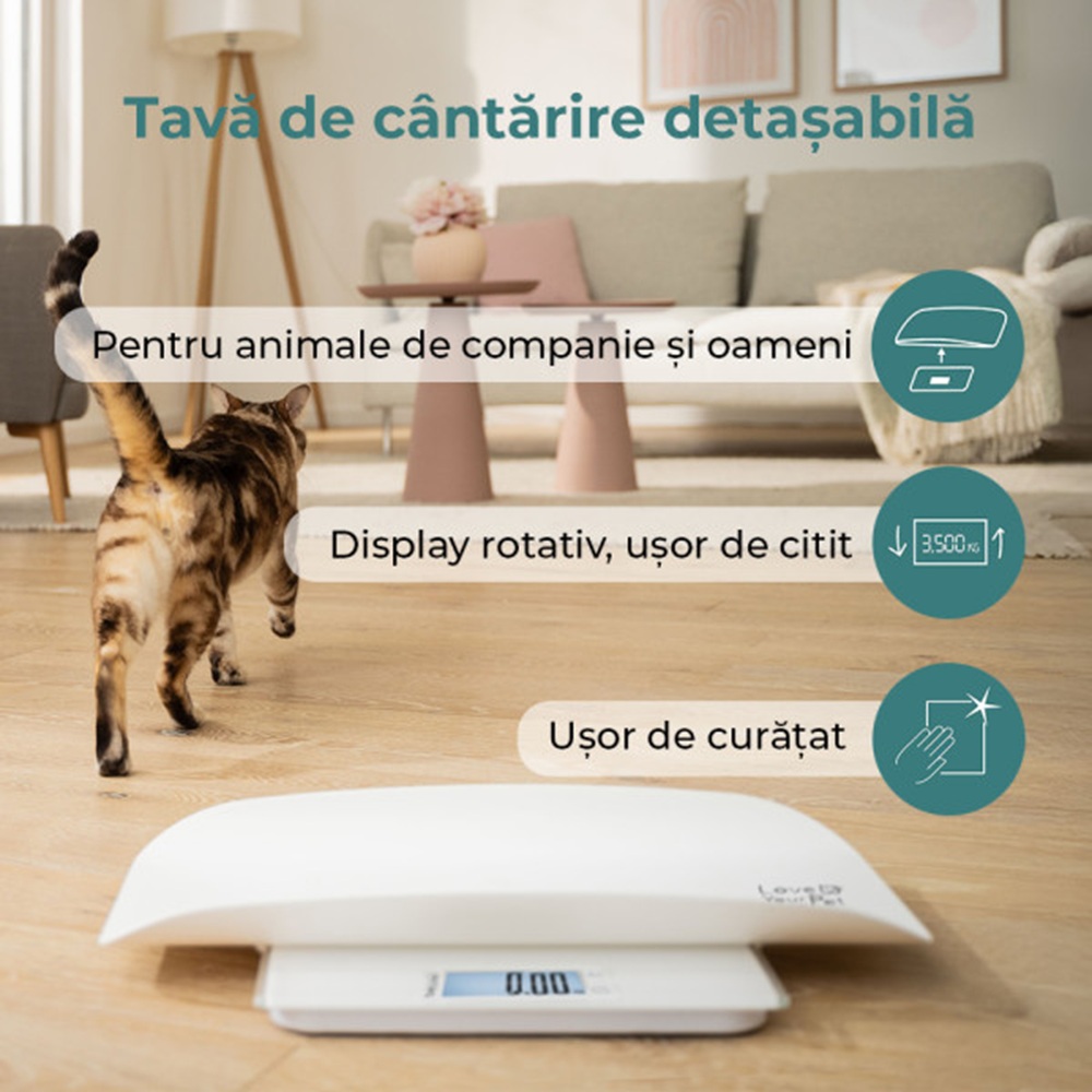 - interval de masurare: animale de companie 0.05–180 kg, persoane 2.5–180 kg;