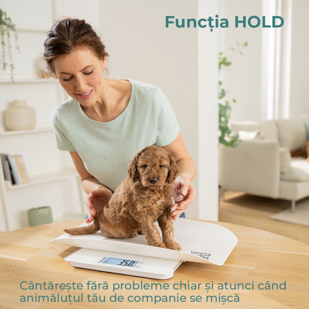 Daca animalul se misca prea mult, apasati scurt tasta LCD/HOLD cand este cat mai linistit. Greutatea va fi afisata stabil in 3 secunde.