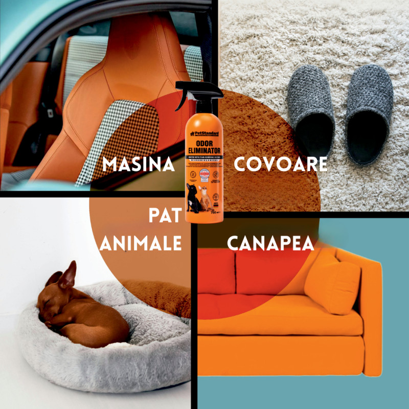 - pe baza de enzime active si bacterii benefice, care descompune moleculele organice responsabile de mirosuri precum urina, fecale, voma, saliva sau resturi alimentare;