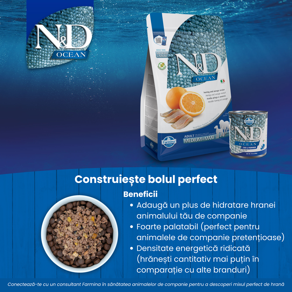 Constituenti analitici:Proteine brute 34.00%; grasimi brute 18.00%; fibre brute 2.60%; umiditate 9.00%; cenusa bruta 7.80%; Calciu 0.90%; Fosfor 0.80%; Omega-6 3.00%; Omega-3 1.20%; DHA 0.70%; EPA 0.40%; Glucozamina 1200mg/kg; Sulfat de condroitina 900mg/kg.