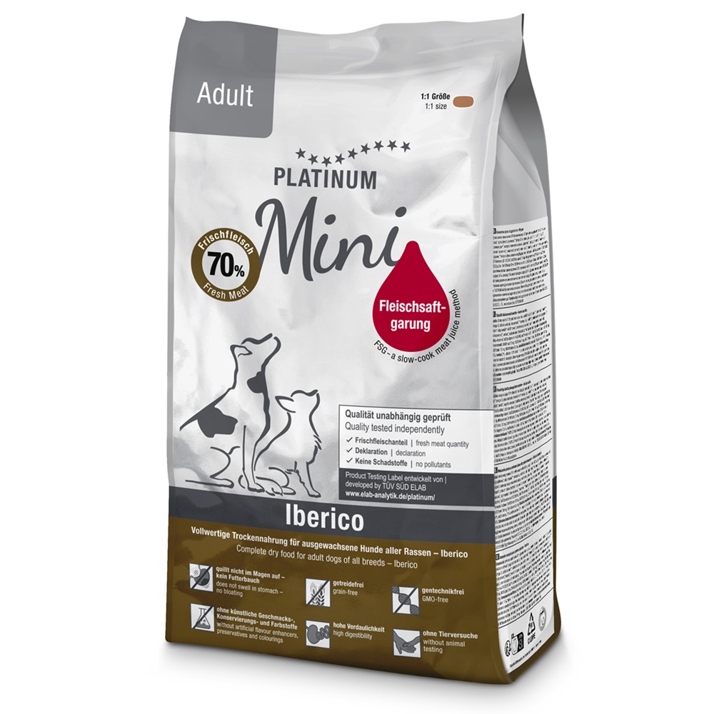Carne proaspătă de porc 70 % (doar porc iberic), cartofi*, pește*, drojdie de bere*, pulpă de măr*, ulei de somon** (omega-3), extract de yucca, ulei de in** (omega-3), ulei de măsline**, extract de scoică cu cochilie verde, morcovi*, roșii*, gălbenele africane*, păpădie*, broccoli*, ceai verde*, mușețel*, oregano*, semințe de armurariu*, semințe de merișor*, alge marine*, clorură de potasiu. (*uscat, **presat la rece, virgin).