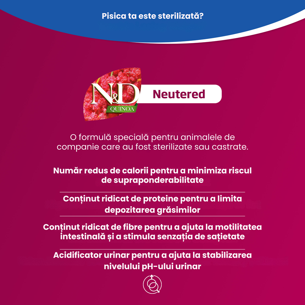 Rata dezosata (22%), proteina de rata deshidratata (22%), cartof dulce, sfecla uscata, proteina de hering deshidratata, extract din seminte de quinoa (8%), oua deshidratate, grasime de pui, fibre de mazare, seminte de in, ulei de peste (din hering), broccoli deshidratat (2.5%), sparanghel deshidratat (2.5%), pudra de celuloza, fructo-oligozaharide, extract de drojdie (sursa de mano-oligozaharide), drojdie de bere uscata, coji si seminte de psyllium, sulfat de calciu dihidrat, clorura de potasiu, clorura de sodiu, glucozamina, sulfat de condroitina.