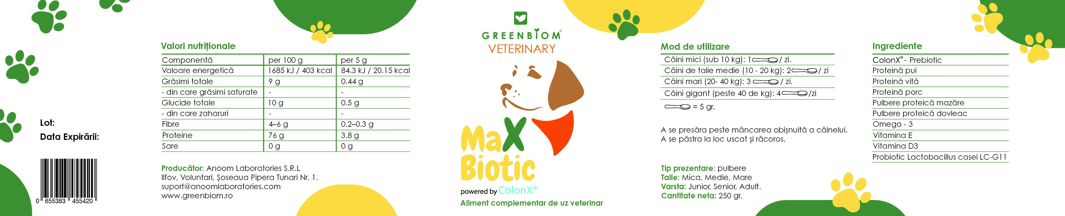 Prebiotic complet pentru caini MaxBiotic Veterinary, 250 g, Greenbiom [655383455420]