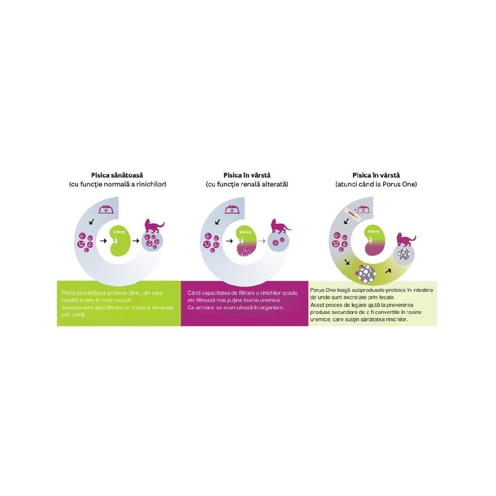 Particulele din Porus One nu vor adera de hrana uscata, de aceea este important sa se amestece cu hrana umeda.