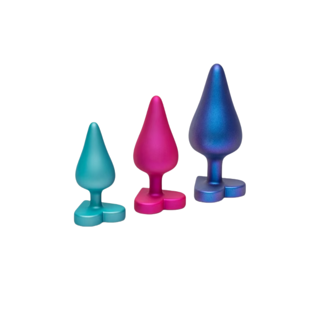 - din silicon, disponibile in 3 culori: albastru cosmic, roz si mov, si in trei dimensiuni crescatoare;