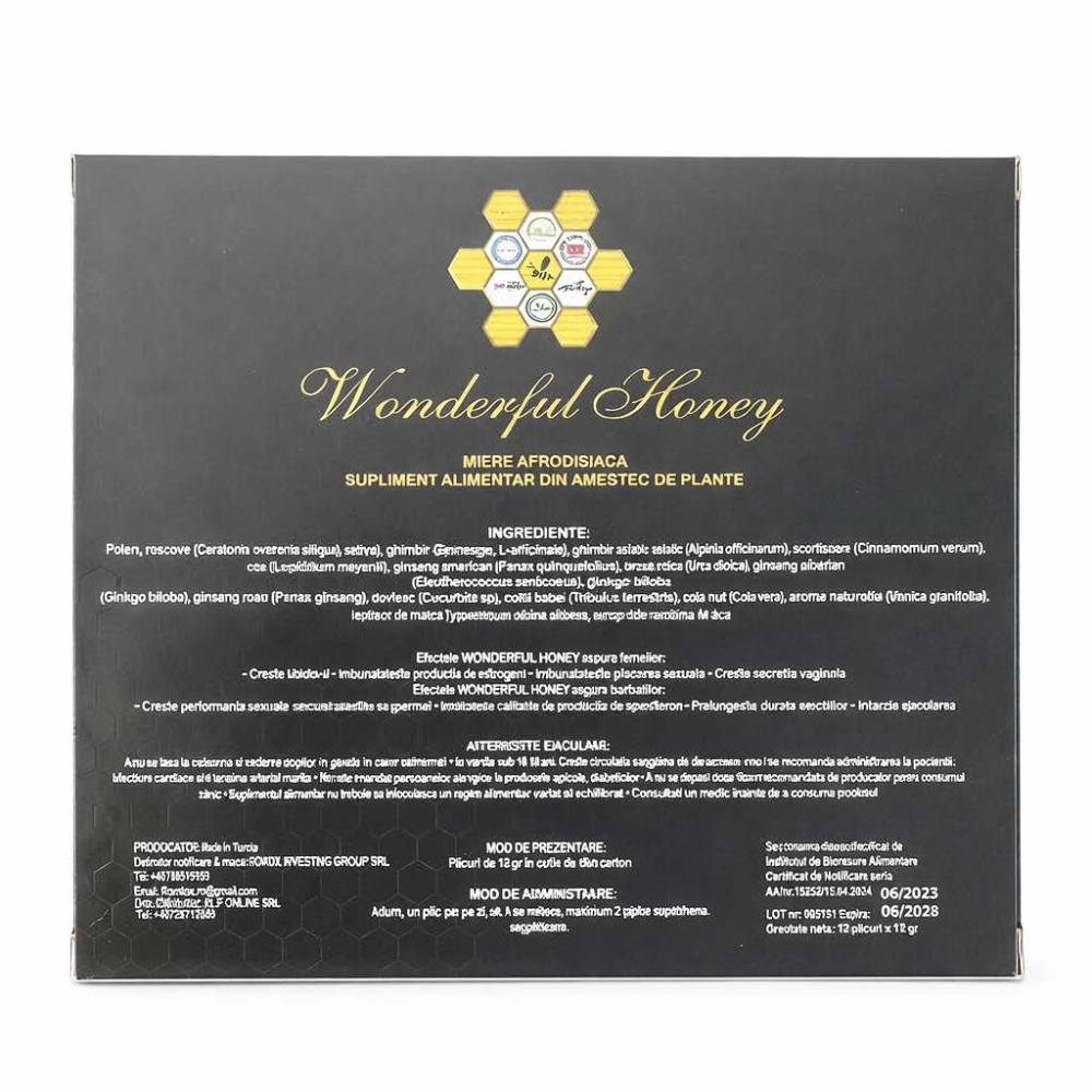 Miere afrodisiaca, 12 plicuri x 12 g, Wonderful Honey [755249178699]