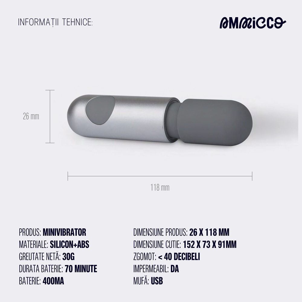 Mod de utilizare:Incarcati mini vibratorul folosind cablul USB inclus, conectandu-l la o sursa de alimentare.