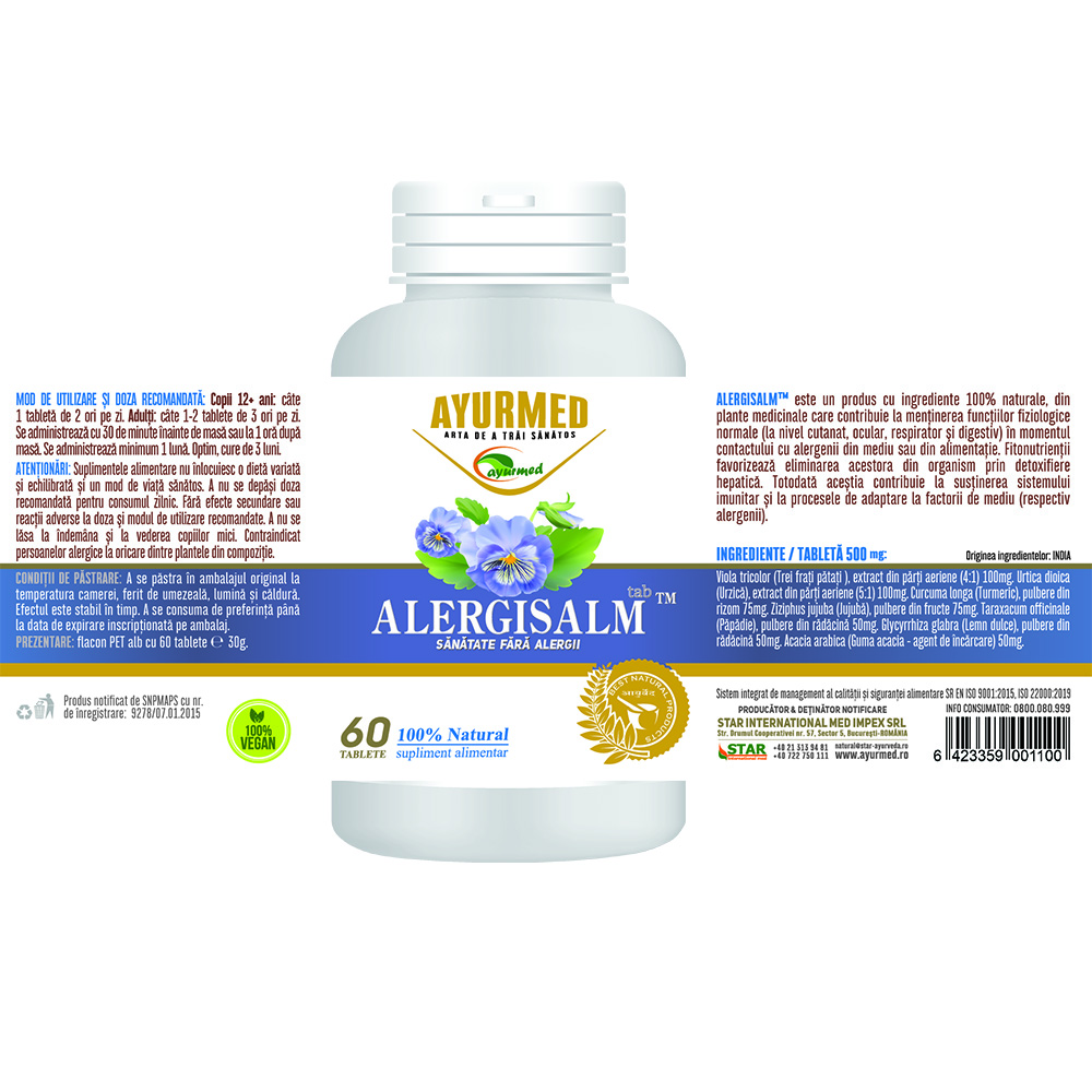 - este un produs cu ingrediente 100% naturale, din plante medicinale ce poate contribui la mentinerea functiilor fiziologice normale (la nivel cutanat, ocular, respirator si digestiv) in momentul contactului cu alergenii din mediu sau din alimentatie;
