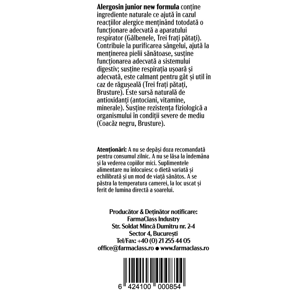 - contine ingrediente naturale ce pot contribui in cazul reactiilor alergice mentinand totodata o functionare adecvata a aparatului respirator (galbenele, trei frati patati);