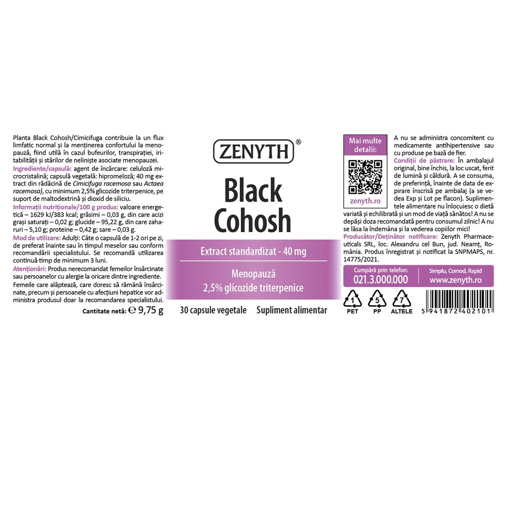 Black Cohosh 30 capsule Zenyth(din extract standardizat din radacina de Cimicifuga racemosa) face parte din categoria supliment alimentar.