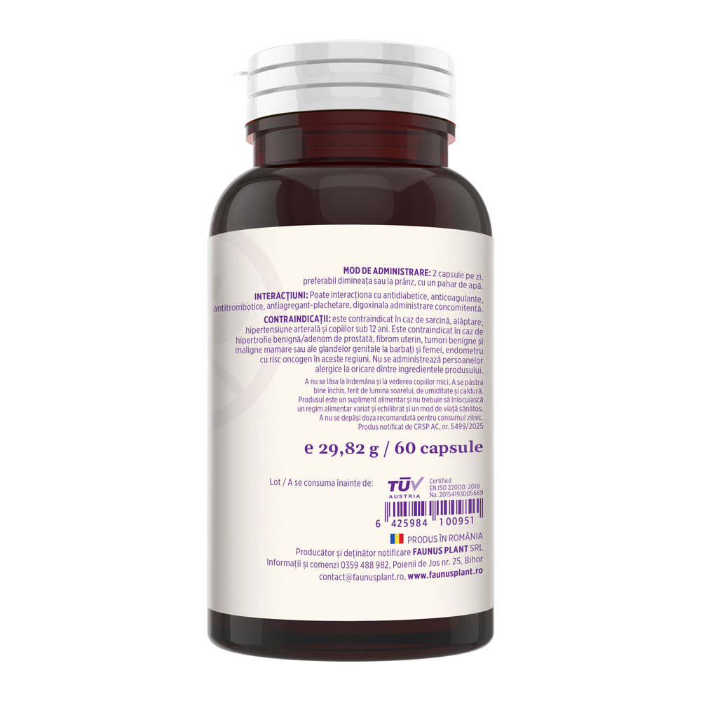 Produsul este un supliment alimentar si nu trebuie sa inlocuiasca un regim alimentar variat si echilibrat si un mod de viata sanatos.