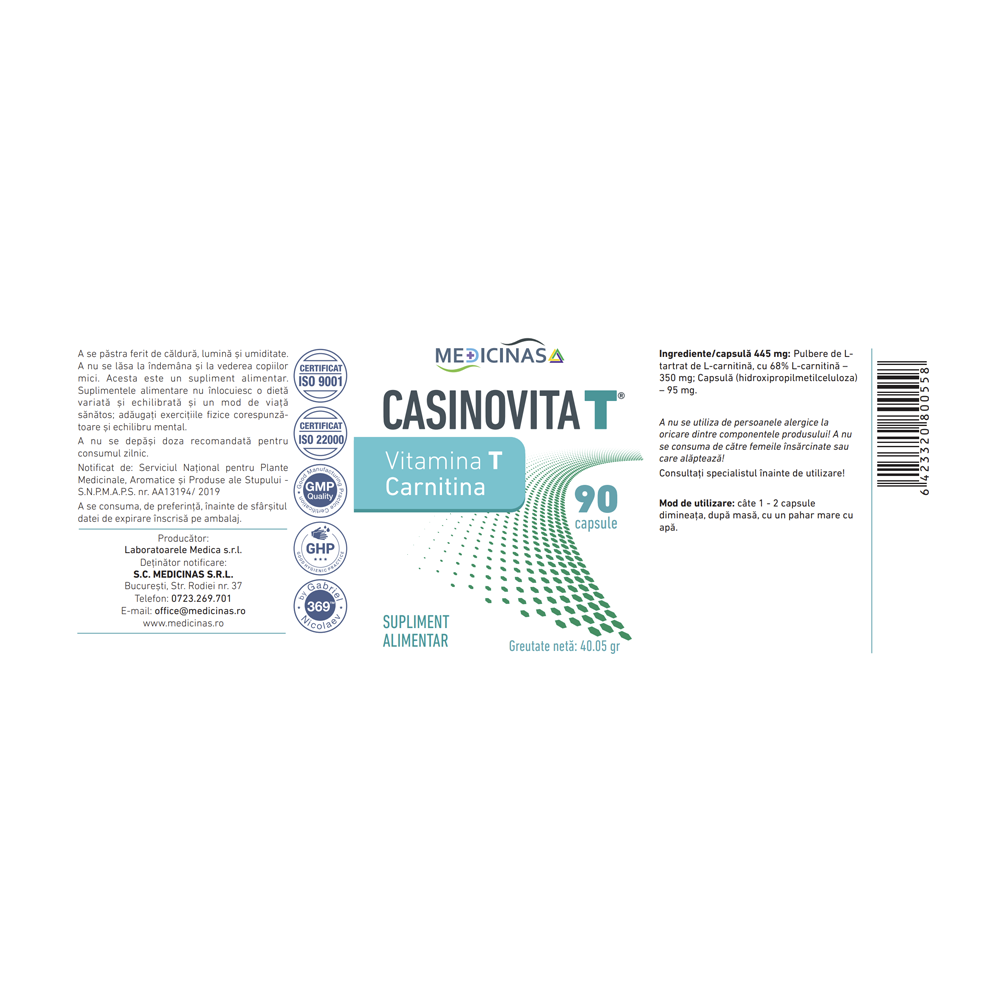 Ingrediente:Ingrediente/capsula 445 mg: Pulbere de L-tartrat de L-carnitina, cu 68% L-carnitina – 350 mg. Capsula (hidroxipropilmetilceluloza) – 95 mg.