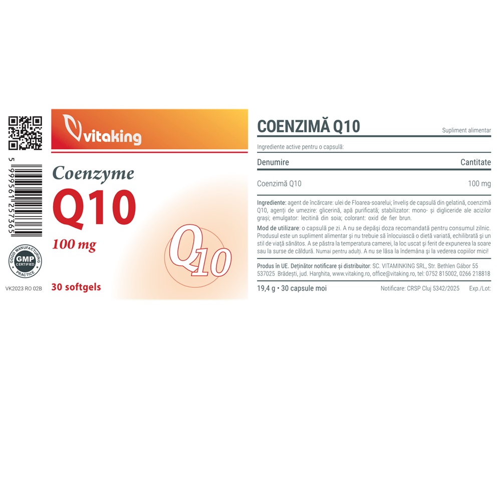 Agent de încărcare: ulei de floarea-soarelui; înveliș de capsulă din gelatină; coenzima Q10; agenți de umezire: glicerină, apă purificată; stabilizator: mono- și digliceride ale acizilor grași; emulgator: lecitină din soia; colorant: oxid de fier brun.